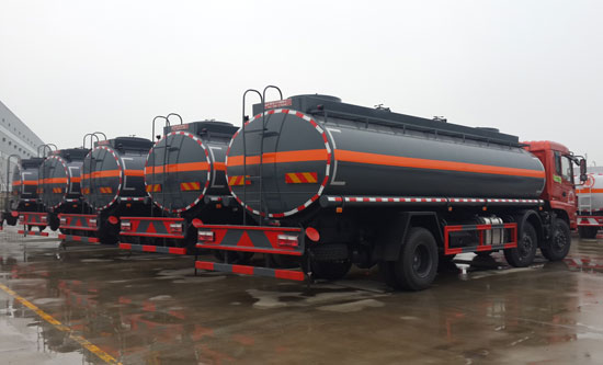 | 整车说明: | 1、该车适用于危险品运输,运输介质:汽油,密度为700千克/立方米;类项号:3,罐体有效容积:21.2立方米,罐体尺寸(长×长轴×短轴)(mm):7900×2280×1580。2、防护材料:Q235A碳钢,连接方式:左右侧面及后部防护均采用焊接连接,后部防护断面尺寸(mm):120×50,后部防护离地高度(mm):510。3、仅采用底盘子午线轮胎和带ABS的底盘; 该车前轮安装盘式制动器,前置排气管,装配限速装置,限速80km/h。安装带有卫星定位功能的行驶记录仪。ABS生产厂家: 东科克诺尔商用车制动系统(十堰)有限公司;型号:3631010-C2000。4.、罐体颜色和文字喷涂位置可变化。5、发动机型号ISD210 50,YC6JA220-50,ISB210 50,YC6J220-52油耗值对应为(L/100km):34.0,34.4,35.7,34.9。6、随底盘选装驾驶室前脸局部造型变化。 | ||