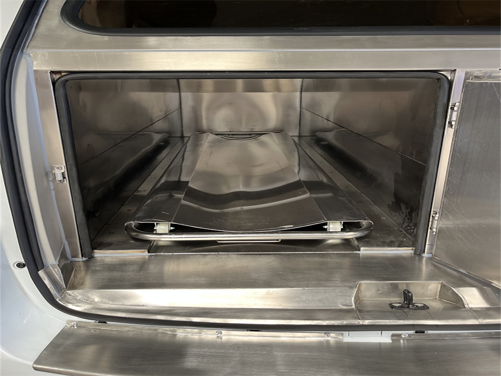 1、采用304D不锈钢加厚材料制作中隔墙(带可滑玻璃窗),方便随时观察后仓 2、有不锈钢工具箱,可放置随车用品 3、前后包铺304D不锈钢花纹底板 4、选配304D不锈钢常温尸棺及担架一副或304D车载制冷棺 5、可根据不同需求进行改装 |