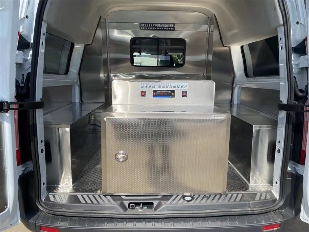 1、采用304D不锈钢加厚材料制作中隔墙(带可滑玻璃窗),方便随时观察后仓 2、有不锈钢工具箱,可放置随车用品 3、前后包铺304D不锈钢花纹底板 4、选配304D不锈钢常温尸棺及担架一副或304D车载制冷棺 5、可根据不同需求进行改装 |
