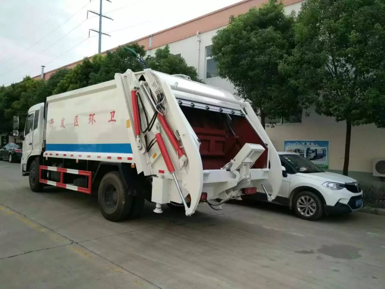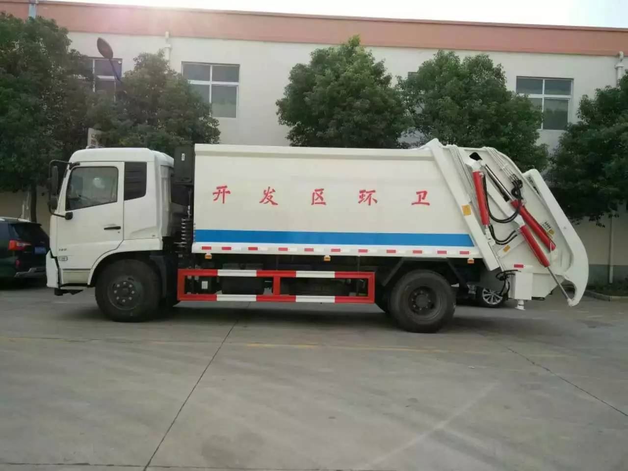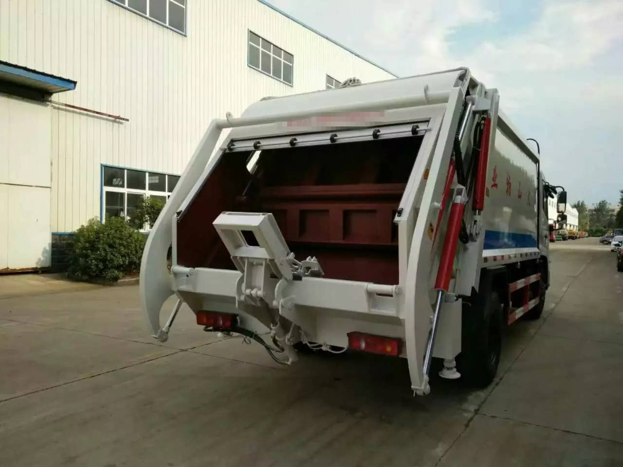 专用部分介绍上装部分由密封式垃圾厢、装填器、推铲、液压传动系统和电气控制系统组成。 工作原理及特点描述 整车为全密封型,采用电液一体化技术,借助机、电、液联合自动控制系统,通过车厢、填装器和推铲等专用装置,实现垃圾倒入、压碎或压扁、强力装填,把垃圾挤入车厢并压实和推卸。压缩过程中的污水全部进入污水厢,较为彻底的解决了垃圾运输过程中的二次污染的问题。
