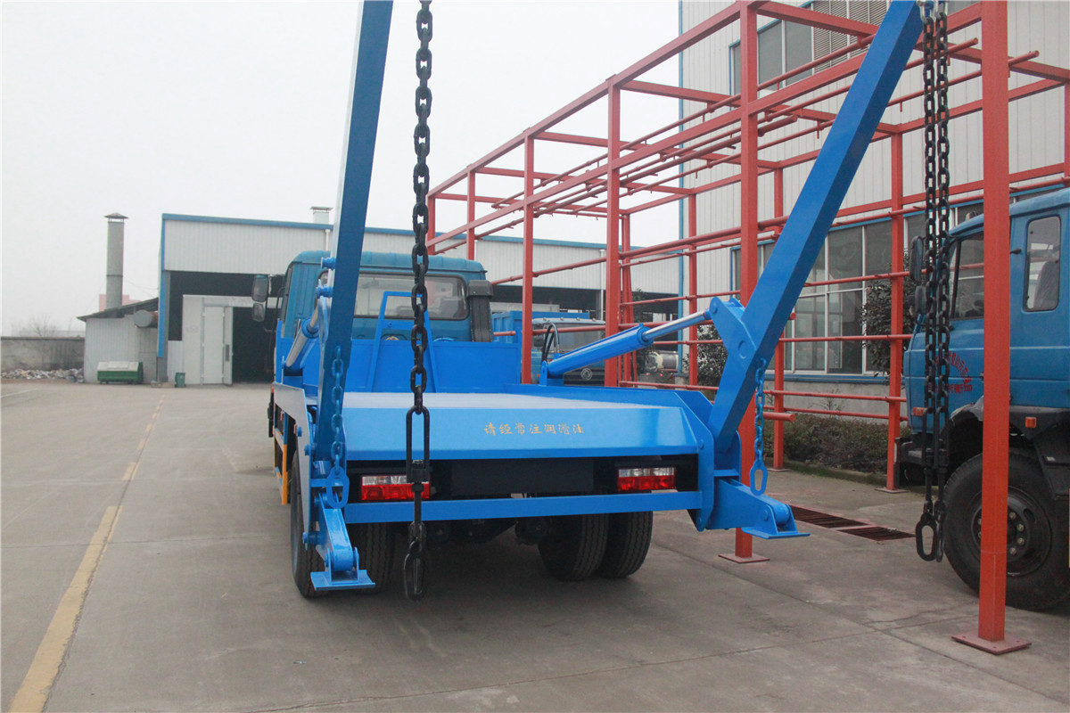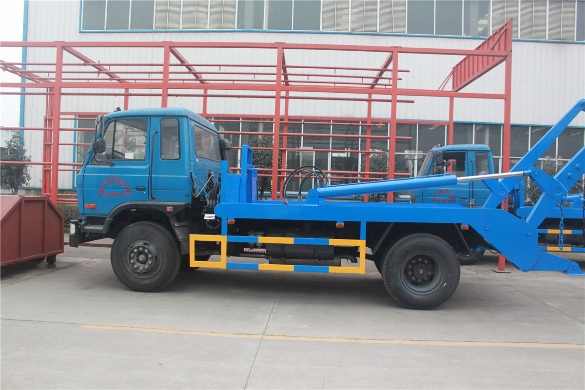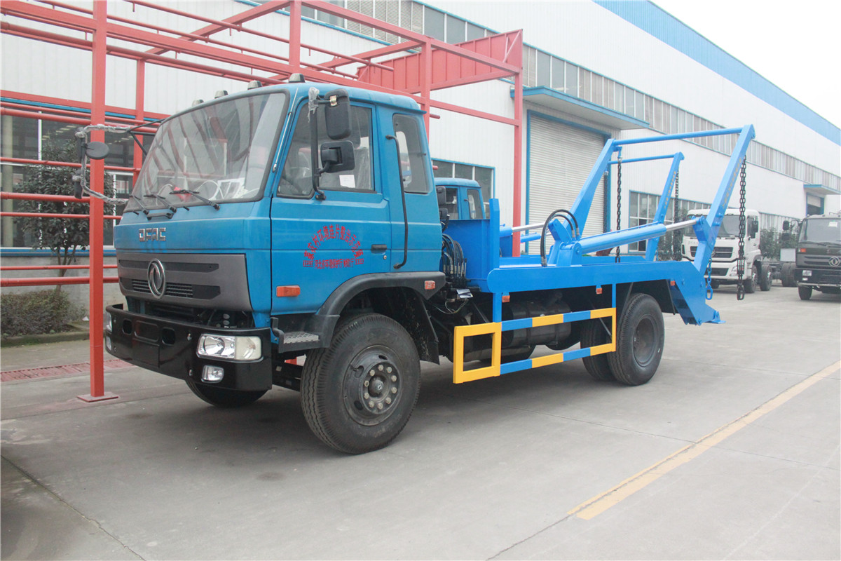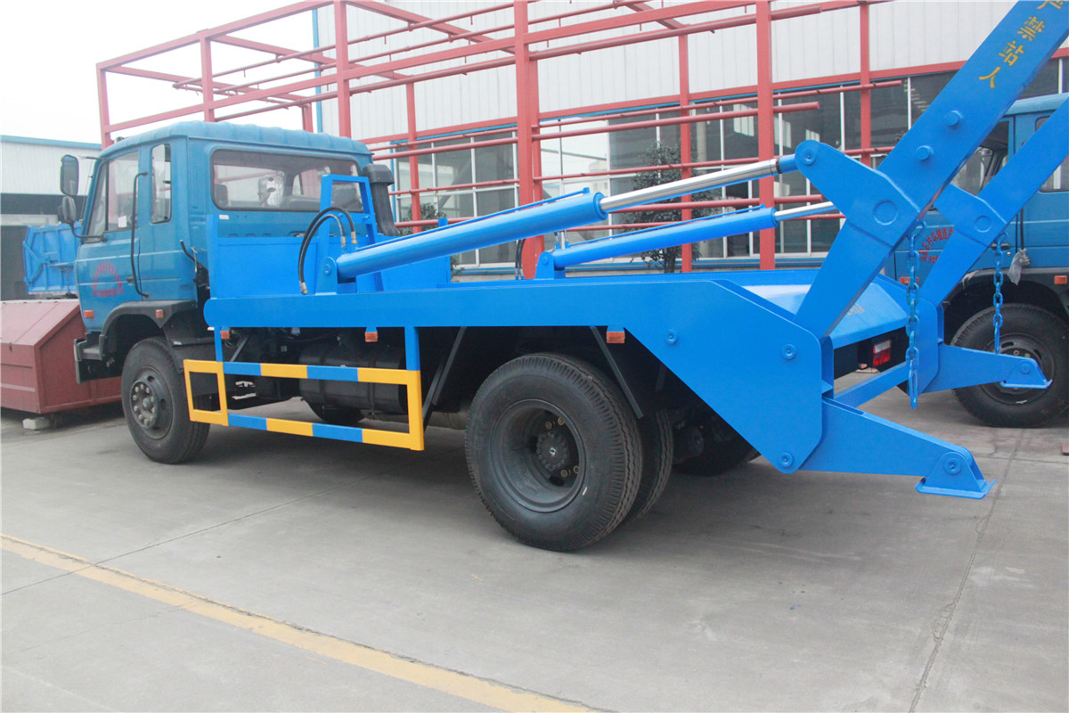 东风153/10吨摆臂式垃圾车底盘配置:康明斯或玉柴发动机,8档变速箱,5吨前桥,10吨后桥,1000-20胎,带备胎,断气刹,方向助力